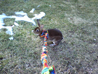 Peanut Butter sporting his colorful leash. Out for a jaunt with the kids. This is obviously an older pic with the patch of snow but we actually had a tiny bit of snow on the ground last week for a couple of hours. Com'on its May already. Enough of the white stuff.